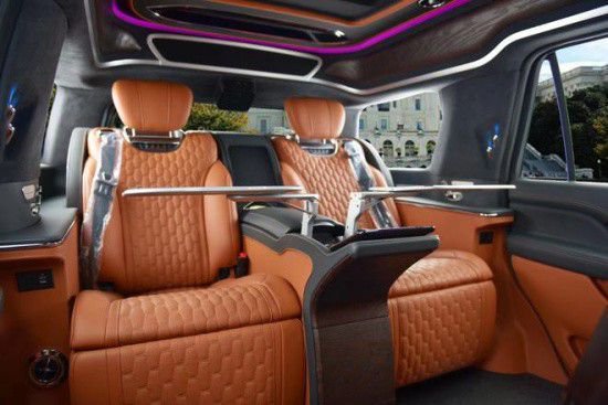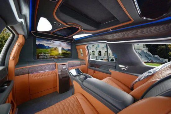 2023款林肯领袖一号后排的老板的航空座椅了,支持3档按摩,座椅的通风,加热,多段式的腿托,柏林之声的音响让你在出行还是商务的时候,都可以舒缓压力放松心情带来天籁般的感受,氛围灯可以多种颜色的切换,全看老板心情,后面前后双电视可以看任何大片,电动窗帘,电动的桌板还有咖啡机都是标配,老板座椅对面还有两个可以折叠的秘书座椅,整车采用4+2的布局,不需要使用可以电动收回,座椅中间的屏幕可以控制后排所有的娱乐设施,不仅有窗帘,玻璃也能一键雾化,保证隐私,法国的柚木地板也是非常的昂贵。