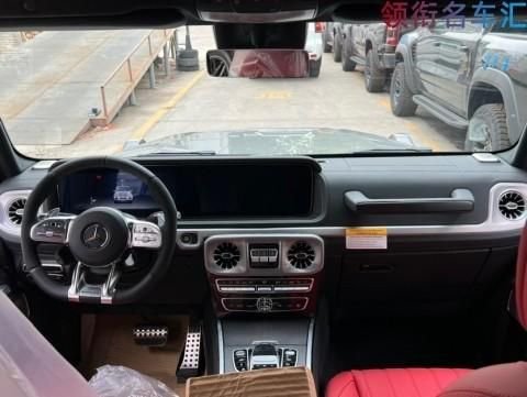23款奔驰G63内饰方面,奔驰的设计绝对可以用惊艳来形容,无论是经典车型还是超豪华车型甚至是入门级的豪华车上,奔驰的内饰都会让你眼前一亮,当然了这也是奔驰的一个特色。所以这部全新的G63在内饰的表现上也是情理之中的,但是细节上还是有些小小的意外。这种感觉是打开车门的瞬间就能够感受到的。首先仪表和中控屏依旧是采用了同一款液晶屏显示,第一感觉就是科技感爆表。而其他方面例如方向盘,空调出风口,挡杆等等的设计充满设计感。