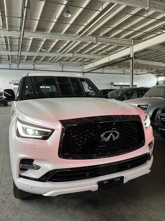 22款加版英菲尼迪QX80Luxe 白/黑 配置:Luxe豪华版,5.6自然吸气 V8发动机,400马力,413磅英尺的扭矩,盲点警告(BSW),牵引能力-8500磅,8座,天窗,真皮加热方向盘,远程遥启,车身镀铬套件,20寸锻造铝合金轮毂,12.3英寸信息触摸立屏,半苯胺菱形格座椅,主动式头枕,二排船长座椅带中央扶手,BOSE音响,17个扬声器,双头枕后排娱乐,随速转向助力,预碰撞警告,盲点监测,车道偏离警告,驾驶员注意警告,雷达测距,环车影像,无线充电,车载蓝牙,前排座椅通风加热,前排座椅记忆,全模式四驱,自动牵引力调节,Apple CarPlay和 Android Auto