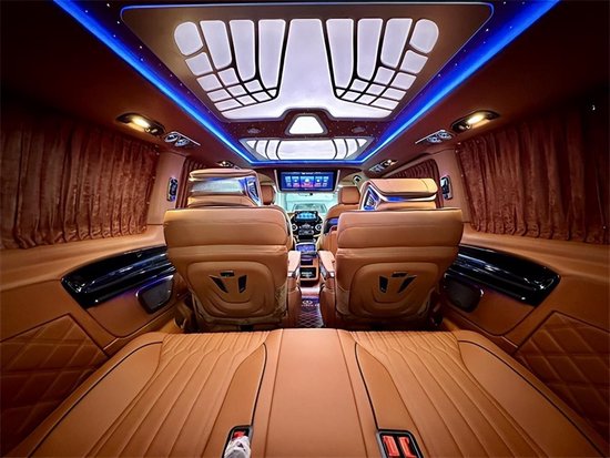 全新奔驰威霆2+2+3座椅陈列,也是商务车最为流行的座椅布局,第二排航空座椅,打孔真皮处置更透气,座椅透风、推拿赐与您更温馨的乘坐感触,更有360度扭转功用;奔驰7座商务车价位 奔驰威霆商务车无论是家庭出游照顾孩子、陪家人谈天,亦或是商务洽谈,都能让您随心所欲,第三排座椅打开,便可构成一张宽大温馨的沙发床,方便乘车人员休息。