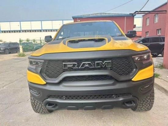 23款道奇公羊霸王龙外观更有冲击力,道奇的设计团队为新车增加了很多高性能元素。比如全车的镀铬件都经过了黑化处理,发动机盖两侧安装了装饰性的黑色进气口,中央部分也为了容纳巨大的机械增压器而做了一个凸起的结构,并且还在机盖上设置了三盏灯。同时,带着铆钉的黑色轮眉和运动化前保险杠上外露的拖车钩,均让Ram1500TRX浑身上下散发出的攻击性更浓烈了一些。