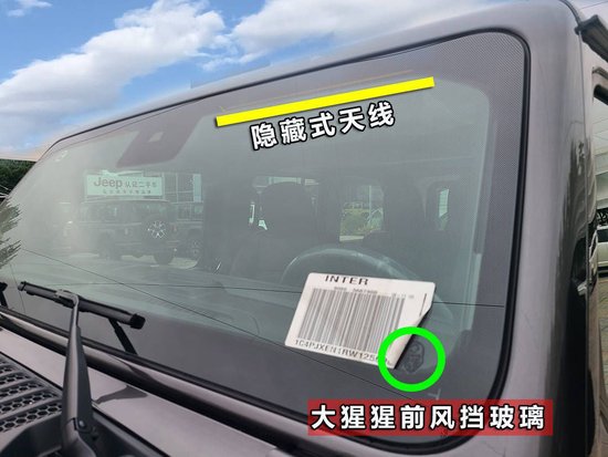 2024款牧马人配备康宁大猩猩玻璃,更加坚固,越野级天线隐身集成至前挡风玻璃。