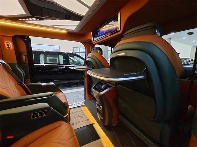 二排航空座椅相比于老款并没有过多的变化基本是沿用,具备通风,按摩,加热,旋转,腿托等功能,其中人体工程学6点位智能气动按摩,旅途的生活也能多一些享受与自在。三排电动调节,配有无线充电,它既可以是一个沙发床,也可以由两个独立的座椅所组成,可满足不同用车的需求。定制顶灯,有多种颜色可以调节,适应车内不同的用车氛围。