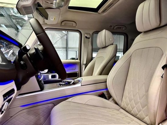 奔驰G400d在内饰方面豪华气息浓厚,仪表盘采用双炮筒式设计,再配合中间的液晶显示屏,粗犷之中又不奔放的感觉, 大量的真皮设计以及一些恰到好处的点缀材质,尽显高贵奢华。
