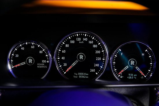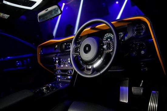 外观的变革还延续到劳斯莱斯汽车Black Badge的其它品牌标识中。车头、侧翼、后进气道处的双R标志变成了黑底银字,前格栅边框、车窗边框、行李厢把手、行李厢下沿饰条、下进风口以及排气管等均变为黑色。格栅中间的竖杆是黑色,但因为每一根都经过打磨抛光而光亮如镜。它捕捉周遭所有的光影变幻,增强了汽车本身的动感。