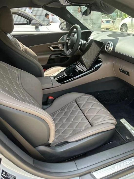 全新一代23款奔驰SL43 AMG内饰的设计与SL55和SL63相同。其体现了最新的大屏为主的设计思路,虽然没有像新S级 (配置|询价) 那么夸张,但是和C 一样的竖屏设计也还算说得过去,只是出风口的设计让你感觉有些突兀。总体来说内饰设计并不时髦,甚至有些在人们的意料之中了。为了防止打开车顶后反光、新SL的大屏可在12-32度的范围内电动调节。此外SL43还拥有两个小尺寸后座、奔驰表示后座可以乘坐1.5米身高以下的儿童、其实就是为了放杂物和宠物使用的。