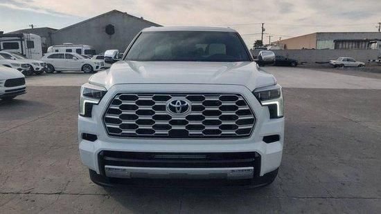 2023款丰田红杉的前脸看起来和坦途基本一样,特别是大尺寸的横向进气格栅以及两侧的L形大灯组,不过格栅和下包围并未像坦途那样是相连的,但却显得车头更加霸气,而且还增加了些层次感。