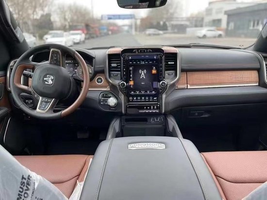 道奇公羊真皮座椅摸起来十分舒适和细腻,很多细节地方也做得相当精致,后排座椅则有通风和加热设备,并且配备了一个小型存储工具箱,可见此款车的设置是十分人性化。款道奇公羊中控台设计看上去比较死板,但丰富的配置会让你不由得为其称赞。RAM 采用了四幅式多功能真皮方向盘,功能键可以控制音频系统。