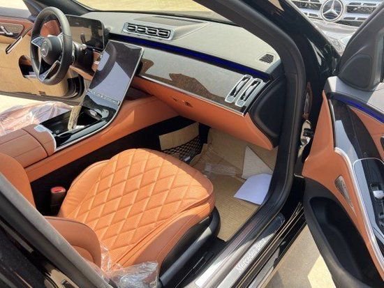 23款奔驰S500 (配置|询价)内饰设计方面,奔驰S500都不能用豪华来形容,简直就是奢华总统小套房,中控部分搭载了双屏设计,12.8英寸的中控大屏以及12.3英寸的悬浮式行车电脑屏和HUD投影显示,配上棕色的内饰设计以及高亮的钢琴烤漆面板,将科技感与时尚感完美融合在一起。