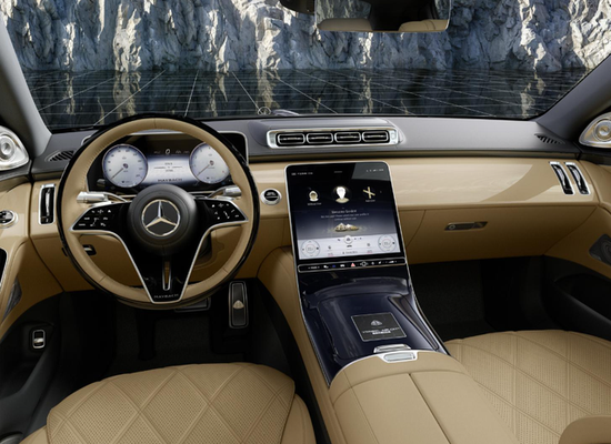进到车内,新车的内饰配色与车身相呼应,车内搭载了悬浮式的全液晶仪表,还有12.8英寸的中控显示屏,整体的设计布局基本保持这S680原本的模样。车内还采用了大量的Nappa真皮包裹,细节处配以缝线设计,凸显出高贵的气质。