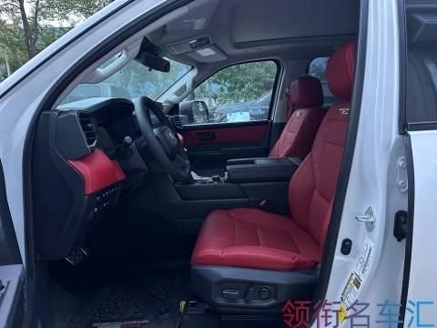 23款丰田红杉PRO版车内采用了大量软质材料包裹,部分区域还加入了缝线处理,显得档次感和质感十足。另外车内采用的是四辐式多功能方向盘,并保留了很多物理按键,足以满足驾驶时想要的操控感,车内的科技氛围是通过12.3英寸的全液晶仪表盘和14英寸的中控屏来实现的,中控屏两侧的空调出风口,虽然没有采用时下流行的贯通式设计,但在中控台上对称排列也别有一番风味。另外顶配Capstone车型的内饰将会采用更加豪华的黑白配色方案,并搭配胡桃木装饰面板。