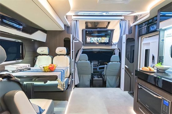 在S820 Plus车型上,车辆选择了进口的 依维柯Daily ( 参数 | 询价 ) 6.5吨级房车专用底盘。和国产依维柯欧胜底盘相比,进口Daily采用点阵式前格栅,并配备了一体式的LED前大灯,视觉表现更好。并且,6.5吨级的底盘相对4.5吨级底盘具备更强的承载能力。