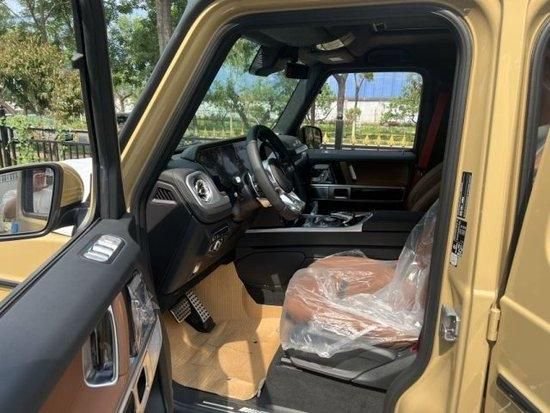 奔驰G63 (配置|询价) 23款 韩版 配置:GT按键,21英寸AMG10辐轻合金轮毂;红色卡钳,红色安全带,前/后排座椅加热;前座椅通风;前排座椅按摩、多轮廓座椅、独家钢琴漆装饰;天窗;3区空调;氛围灯、Burmester音响系统;带 361°摄像头的停车包;宽屏;多功能真皮加向盘;多光束LED大灯;主动车道保持辅助;主动刹车辅助;主动距离辅助系统;注意力监测;主动泊车辅助系统;车道保持辅助;预安全防护系统、后拖钩