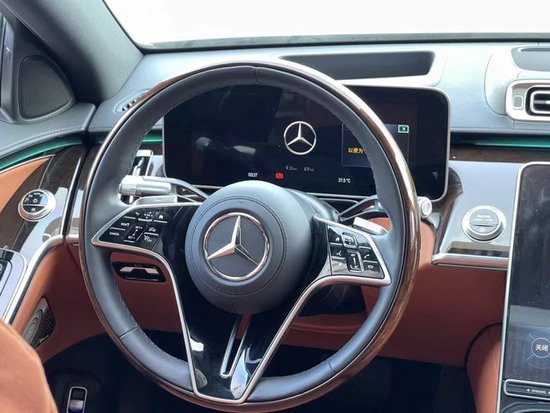 奔驰s450升级版中控台采用大量高品质实木面板精巧的中央送风口和指针式时钟完美镶嵌,其中内饰中最大面积的电子装备就是12.3英寸的两块高分辨率屏幕了。车内实木与真皮相间包裹所带来的视觉效果和手感都饱满坚挺。