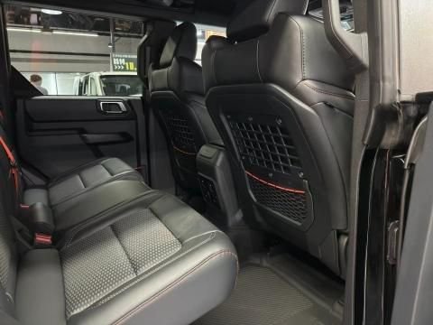 23款福特烈马猛禽 (配置|询价)版的身材显然比原来普通版福特烈马bronco 看起来更壮实了,因为猛禽版尺寸略有变化,更关键的是轮距扩大,宽大的感觉甚至超越牧马人 (配置|询价)。车辆底盘悬架离地间隙也抬升了,目测最小离地间隙已经可以达到350毫米以上,这就相当于原厂升高效果。