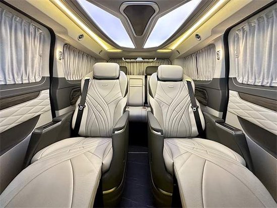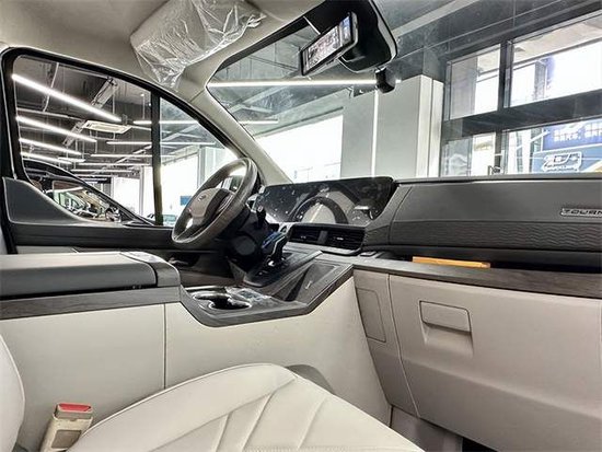 采用7座MPV商务车2+2+3的座椅布局。加热仓的两个座椅均带有通风和加热以及电子的调节中央还有扶手冰箱。驻车雷达以及360的全景影像,还带有上坡辅助发动机启停技术,以及我们的定速巡航,在行驶过程中也有很好的安全保障。全车都是真皮包覆从驾驶舱的门板到中控台到顶部,到门板到座椅都做了精细化的包覆。门板上的压花走线也非常的工整,体现了整台车子的品质与质感。