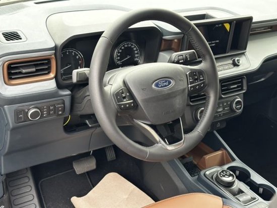 福特独行侠的内饰设计与传统福特皮卡有着明显的不同,采用了更贴乘用车的设计理念,配有全液晶仪表盘、悬浮式大尺寸中控屏、旋钮式换挡结构等,并采用了黑色+棕色的双色主题。