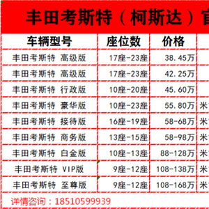 丰田考斯特厂家直销:18510599939 彭经理同微信