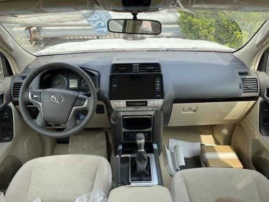 23款丰田霸道2800 配置:TX-L、2气囊、7座、外挂备胎、丝绒座椅、265/65R17铝轮、天窗、LED大灯、大灯清洗、三区自动空调、一键启动、无匙进入、电动折叠后视镜、前排手动座椅、冰箱、倒车影像、后4电眼、二挡起步、车身稳定系统、中央差速锁、下坡辅助,行李架、黑色脚踏板、巡航、多功能方向盘、尾翼、拖钩、150L大油箱