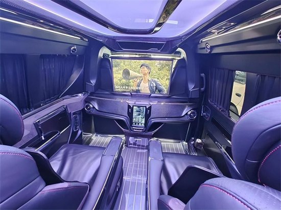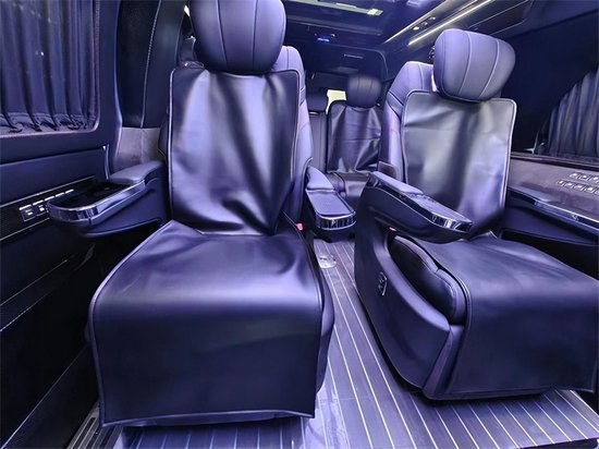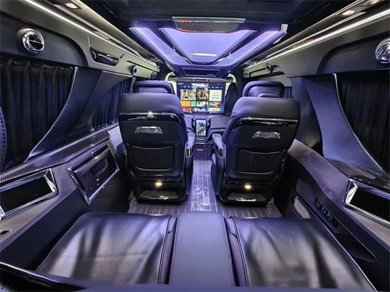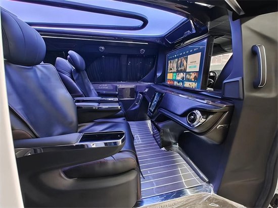 整车属于一个6座的车型,由4个航空座椅组成,气压按摩,电动通风和加热,座椅旋转,座椅腿拖,虽然功能性跟其他航空座椅没有两样,但是品质,以及功能使用过程中的舒适性,可是有着极大的不一般。跟其他的MPV车型相对,高了很多个档次。