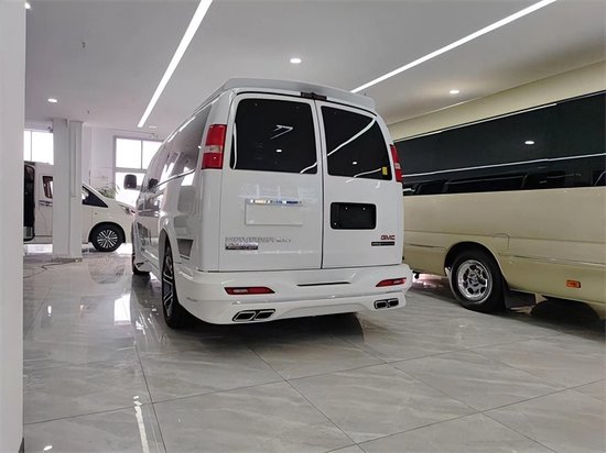 大家好,商务车解说,我是鲁秋君。今天了解一款商务之星——GMC,这款车型尺寸是5715*2098*2200,在目前的商务MPV车型中,尺寸算是大的,当然,空间感也更好。这款外观是白色的,还有黑色,蓝色的外观,此外,还有高顶版的GMC。