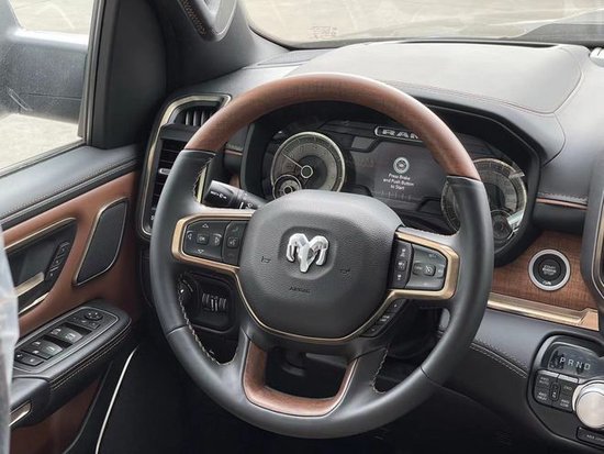 道奇公羊中控台设计看上去比较死板,但丰富的配置会让你不由得为其称赞,RAM 采用了四幅式多功能真皮方向盘,功能键可以控制音频系统