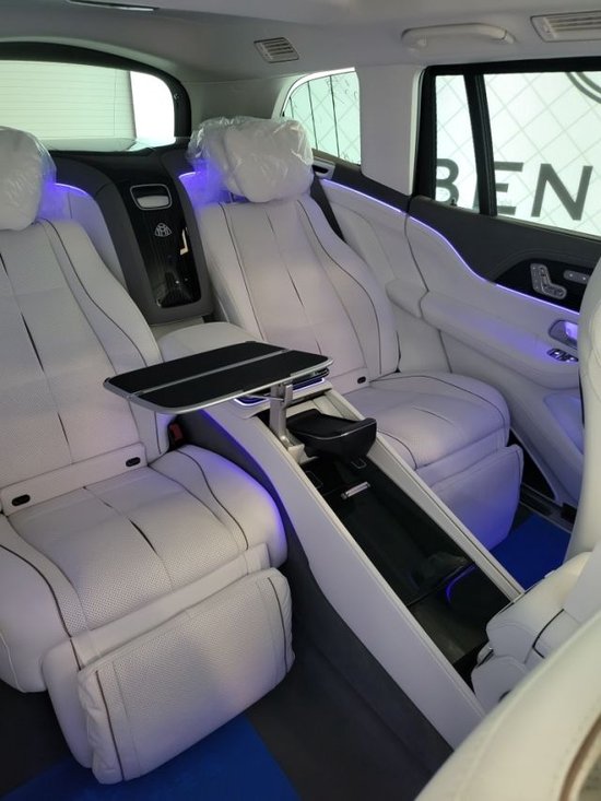 首发限量版标配:23轮,4座,冰箱,小桌板,VIP红魔毯香槟杯架 冷暖加热[选配黑钢琴流星雨烤漆内饰/钢琴桃木盘/主动降噪]4D大柏林音响1610千瓦,两个功放箱,带座椅(振荡器) 声学舒适包车内静谧无音。26种空气香氛平衡,全自动驾驶脱困模式,美规多环绕座舱加热四车门操控台加热 +扩展小牛 (配置|询价)皮强化了迷人的MAYBACH内饰美学。