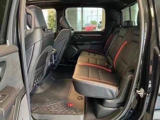 23款道奇公羊霸王龙外观设计极具冲击感,前倾式车头,相较中规中矩的家族设计无疑多了几分对路面的侵袭感,眼神中没有透露出一丝的活泼神韵唯一展现出来的只有凶狠,前杠是铁质前杠带拖钩,散发这金属气息,沉稳大气,作为最畅销的车型拥有着极富侵略性的前脸。电话:13034318716 鞠经理(电话同微信)