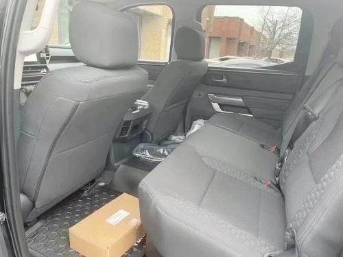 2022款丰田坦途座椅提供有皮质包裹,整体的造型也非常宽大,在中央扶手区域的设计上也采用了非常方正的造型设计,并且可以看到前排的储物空间设计还是非常丰富的。