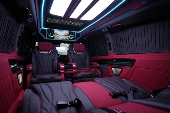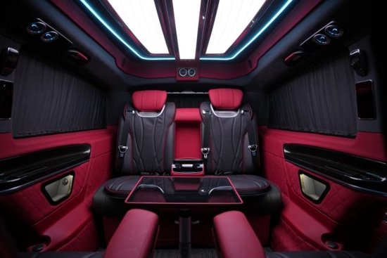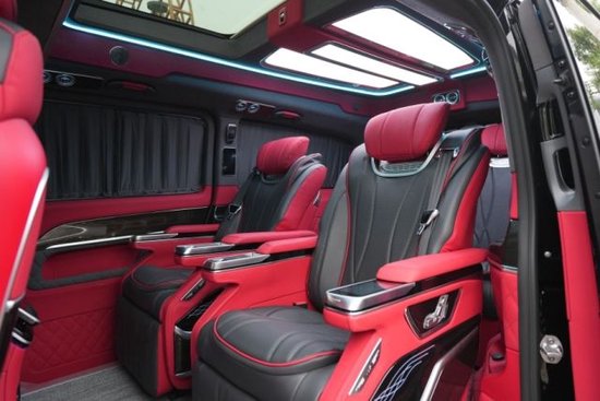 奔驰V260L改装隐藏六座全隔断商务车,后排座椅采用两个迈巴赫62S首长级座椅,带加热,按摩,通风,一键式电动调节记忆等功能。奔驰V260L改装高顶隔断商务车座椅符合人体工程学设计,同时带有电动椅背调节,电动头枕,电动前后调节,一键式伸缩腿托功能,带来头等舱级舒适体验,私家客厅级后舱体验。