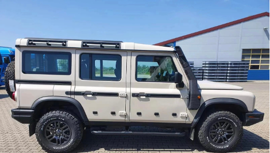 掷弹兵外观粗犷,整体采用方正造型,继承了老款路虎卫士 (配置|询价)硬朗外观设计风格,从挡泥板形状到侧窗下方肩线,再到门把手和外部铰链,众多细节设计均引用了老款卫士的造型元素,车身硬朗线条,平直腰线,车顶侧面没有采用卫士的小型天窗,更多咨询请致电刘经理15222407919《同微信》而采用凹陷式小导轨,方便车外或车顶安装车顶行李架等设备,外露式车门铰链,车门和车侧后部设有多功能导轨与锚点,可固定货物或安装其它配件,测试车还装有侧踏,提供17/18英寸钢制轮毂,配全地形轮胎,可选专业越野轮胎。