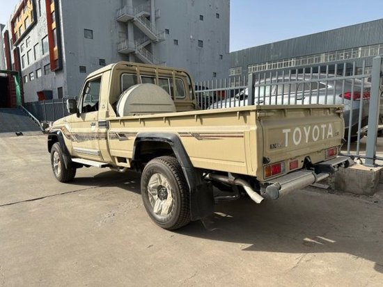 酷路泽LC79 23款 4.0 汽油 单排 70周年纪念 油箱90L+90L,排量3956CC,5速手动挡,分时四驱,后差速锁,16英寸合金轮毂,前碟后鼓,2气囊,ABS,VSC,EBD,HAC,ATRC,前杠,镀铬电动后视镜,脚踏板,数码钟,3座,丝绒座椅,空调带制热,电动天线,倒车警报,电动门锁,电动车窗,AUX,USB,蓝牙,原厂绞盘,手扣箱带锁、制冷,前雾灯,轮眉,后雾灯,冰箱,彩条,外挂备胎,胎压监测,桃木内饰,桃木方向盘,气泵