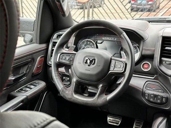 22款道奇霸王龙TRX在内饰部分进一步强化了其高性能版本的形象,中控台和座椅随处可见的TRX标识便是最好的例证。同时,作为道奇家族的旗舰车型,新车还配备了12英寸竖置中控屏幕,除了支持蓝牙、导航和车载Wi-Fi等常见功能,还支持Apple CarPlay和Android Auto手机映射。