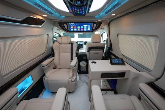 丰田海狮改装商务车内饰的改装上,还有许多不同的细节的设计。对于旅行来说,乘车过程中难免会有许多烦闷之时,所以乘车过程中的娱乐活动可以帮助我们很好的打发时间,有一个愉悦的体验。此外,吧台、电视、阅读灯和酒柜的加入。