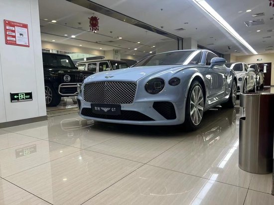 22款欧规宾利欧陆GT 颜色:炫蓝 内饰:米/热刺红 选配:21寸十幅喷漆轮毂,前座椅舒适包,旋转屏,座椅刺绣,反衬缝线,氛围灯、双色加热方向盘,脚垫 迎宾灯