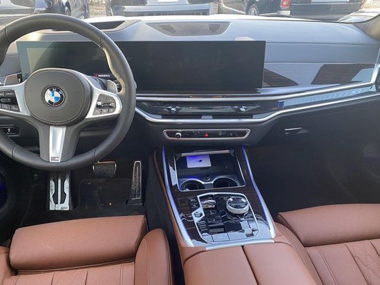 2023款全新改款宝马X7内部部分,新款宝马X7在保留了现款车型大致的设计与布局的基础上进行了小幅优化,譬如使用了全新的曲面双联屏造型,其12.3英寸仪表+14.9英寸中控大屏的组合显得极具科技氛围,并且得益于最新的iDrive 8操作系统,令其拥有出色的智能化和驾驶辅助功能。
