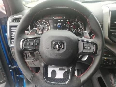 23款道奇公羊霸王龙内饰部分进一步强化了其高性能版本的形象,中控台和座椅随处可见的TRX标识便是最好的例证。同时,作为道奇RAM家族的旗舰车型,新车还配备了12英寸竖置中控屏幕,除了支持蓝牙、导航和车载Wi-Fi等常见功能,还支持AppleCarPlay和AndroidAuto手机映射。