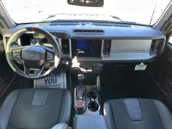 23款福特烈马Bronco3.0T四门Raptor猛禽车内采用硬朗的设计风格,中控台设计主次分明且有层次感用料也厚实。多功能方向盘造型运动,中控屏幕采用内嵌式的设计增添了车内的时尚感,按键布局合理档把设计精致座椅宽大厚实空间宽敞实用性强。