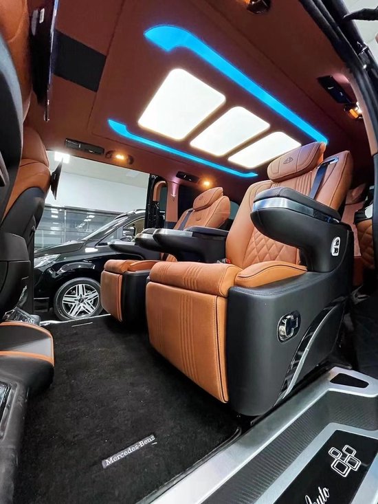 奔驰迈巴赫VS680L凭借行政座椅,前排乘客侧的后排乘客即使在长途行车中也能够完全放松。仅需按下一个按钮,便可将座椅设置到舒适的角度,最大倾斜角度为 43.5 度。一个附加的伸出式腿部支撑进一步增强了舒适性。