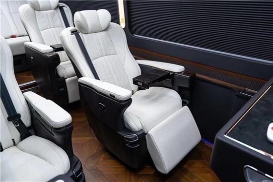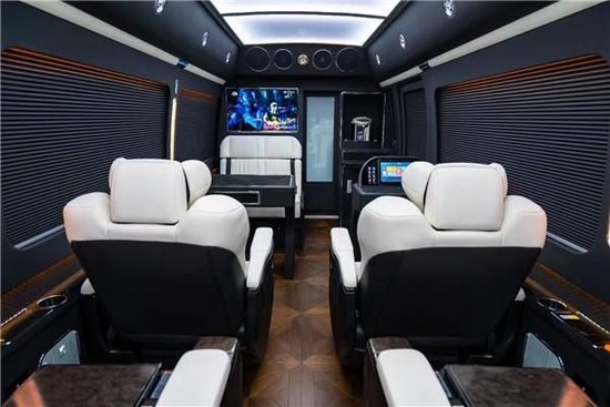 丰田考斯特内饰的改装主要项目有驾驶舱加隔断、座椅改装、车厢内置豪华办公桌、电动及手动秘书桌、办公桌,豪华电动窗帘、车载冰箱,安卓大屏娱乐系统与BOSE音响、超大液晶电视与K歌系统、全车地毡及游艇木地板,360度可旋转阿尔法 (配置|询价)航空座椅而且还配备了座椅腿托,座椅加热、通风、按摩,能让乘客以最舒服的姿态来乘车,LED高亮度阅读灯、车内氛围灯、A380航空顶灯等等,并可按不同客户要求,华通丰业进行专业的改装定制。