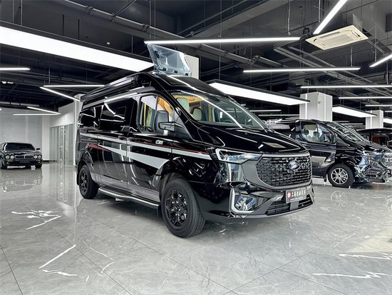 瑞弗启界R500基于福特V362新全顺国六底盘打造,核载人数4人,外形尺寸5800*2080*2480mm,轴距长3300mm,Eco Boost 2.0T发动机,匹配福特原厂6AT变速箱,5500转时爆发最大202匹马力,3000转时爆发最大300牛米扭矩,离地间隙与原车一样,最小离去角25度,完全还原乘用车的驾驶感受。