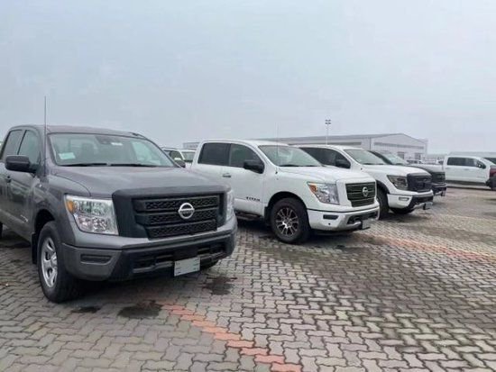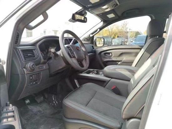 23款尼桑泰坦,配置:PRO4X,白黑、黑黑、灰黑、深蓝/黑、沙漠风暴/黑5.6LV8发动机,4*4,9速自动变速箱65W四轮盘式,坡起辅助,陡坡缓降,后差速锁,18轮275/70全地形轮胎,全尺寸备胎,紧急制动,行人监测,车道保持,盲区监测,路标识别,倒车预警,预碰撞预警,前排/膝部/侧气囊,气帘,儿童座椅接口,防抱死,车身稳定控制,7英寸仪表盘,NISSANconnect连接,支持appleplay;AndroidAuto,USB接口,购车热线:18812637416刘经理 (同号微信)蓝牙连接,声控系统,织物座椅,前排8向电动腰部调节座椅,后排座椅60/40折叠,皮质多功能方向盘,座椅储存空间,可折叠脚垫,110V电源输出,双区空调,自动调光多功能后视镜,巡航系统,无钥匙进入,一键启动,6喇叭,AM/FM,脚垫,外部:LED大灯/远光灯/雾灯/后车斗灯,大灯手动调节,黑色轮眉,黑色智能门把手,电动/可加热外部后视镜,拖钩(4针/7针连接),喷涂后车斗,红色前拖钩,黑色尾门带PRO-4*标志,感应雨刷