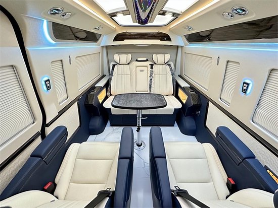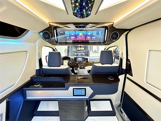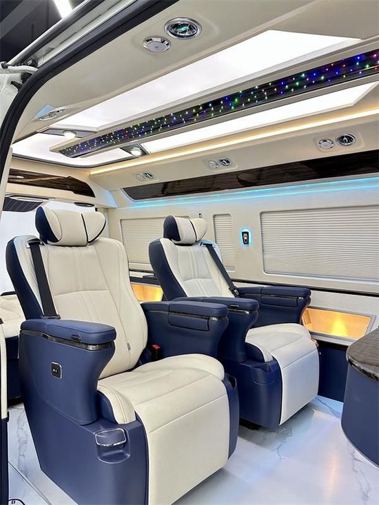 丰田海狮豪华版在车内顶部配备星空顶灯,这种灯光不仅亮度更高,而且可以根据需要任意调节灯的颜色,美观大气而且十分的实用。当然除了顶部的空客灯,华通丰业丰田海狮车内还配备了很多的灯光包,例如迎宾LOGO灯、迎宾地脚灯、立柱彩灯、空客顶灯、压条灯、阅读灯等等。丰田海狮奢华定制版车内窗帘全部升级为方便使用的电动升降百褶窗帘。