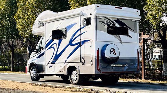 这款瑞弗S820PLUS房车的整车尺寸为5995*2495*3280mm,(_详情垂询:l33-2195-6679_)可持蓝牌C本。车身外观以白色为基底,车漆珠光变色,更显质感,蓝灰色动感拉花图案来源于“百鸟之王”凤凰,张力十足。大额头两侧辅以红色拉花点缀,还有夜间带灯的“REV”瑞弗标识,整体十分亮眼。前脸点阵式进气格栅与两侧造型犀利的一体式LED大灯,使其具备良好的视觉表现。