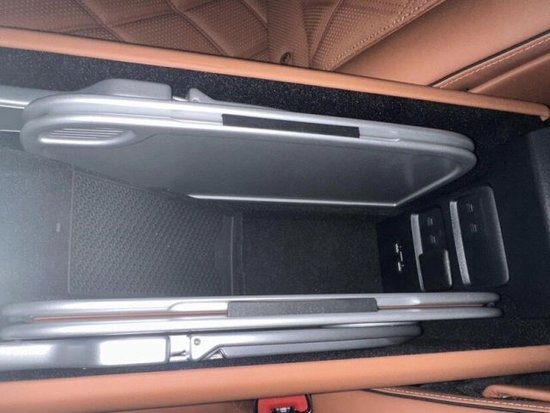 走进车内,仪表盘使用的是液晶显示屏,车门的做工用料都很精致,车门上的拉手和按键质感都很棒。前排座椅都支持通风和加热功能,音响系统使用的是柏林之声真皮的座椅,宽大舒适、柔软。内饰的设计风格极度奢华。方向盘使用电动调节位置,车辆使用的是滑档方向盘,集成定速巡航和多媒体控制等功能。中控屏幕的尺寸比较大,360度。环绕摄像头很实用,中控屏幕的操作逻辑很容易上手,大屏幕使用导航非常方便,氛围灯的颜色也可以自由变换,液晶仪表盘显示的内容清晰细腻。车顶配有两个阅读灯和眼镜盒,车顶配有一个很大的天窗,隐藏式的杯架也很实用,手套箱的尺寸挺大的。后视镜带有补光灯功能。