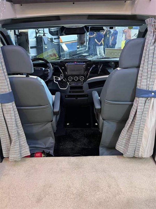 外置进口风感自动收回电动遮阳棚,自动感知风力,可及时收回防止遮阳棚受损。顶部超大曲面透视顶窗,满足车内空气流通与采光需求。乘客门下方配备电动踏步,方便乘客上下车,有效避免因忘记收回踏步带来的行车安全隐患。配备户外柴油灶,上方搭配小型置物台,可随时随地享受户外烹饪乐趣!车尾部配备电动驻车平衡器,有效提高驻车稳定性。