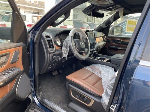 全新道奇公羊长角号在你打开车门的一瞬间,你就能够感受到这款皮卡的豪华感扑面而来,肉眼能够看到的地方几乎全是皮革材质,仪表板、车门把手、门饰板都是百分百全粒面皮革。对于座椅还是有些许不同,座椅表面还镶嵌有鳄鱼浮雕图案,手套箱以及中控台等处也均有这样的铭牌标记,时刻提醒你这款皮卡身份的高贵。此外,一些细节点缀均采用镀镍的形式,并且为了与长角号这个名称更为贴切,车内多处采用了实木材质,营造一种乡村的感觉!