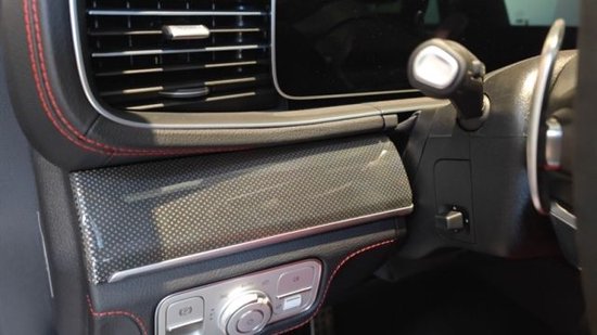 内饰方面,依旧延续了运动型AMG的主题,乍一看,你可能会被众多的红色缝线所震撼,欢迎它隶属于新车的一个可选配置包,不仅是缝线,包括方向盘上也增加了红色的中心标记(就像你在一些赛车中看到的那样)和红色安全带等等。 另外,它的内饰还采用了大量的碳纤维材料,让它进一步散发出浓郁的运动与舒适感。