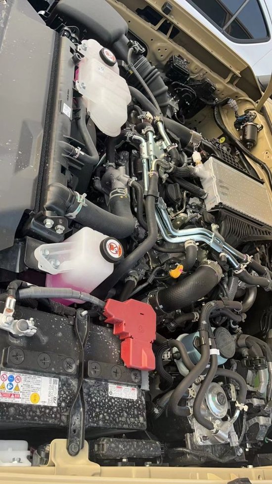 此车配置:2.8T D4D发动机 201马力 500牛/米 6档手自一体 5座 棕色双拼座椅 桃木方向盘 桃木内饰 多功能方向盘 冰箱 大屏 苹果Carple 自动挡 6速 踏板 绞盘 涉水喉 轴头锁 拖勾 16轮 行李架。(以实车为准)
