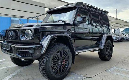 23款奔驰G63 (配置|询价) 4X4基于G63打造,车型延续了奔驰G级 (配置|询价)经典的方正外观,并在普通G级的基础上加入了大量运动套件。具体来看,新车提供了直瀑式格栅,车侧采用了大尺寸多幅轮圈,并针对内部卡钳进行了喷红处理,运动味十足。